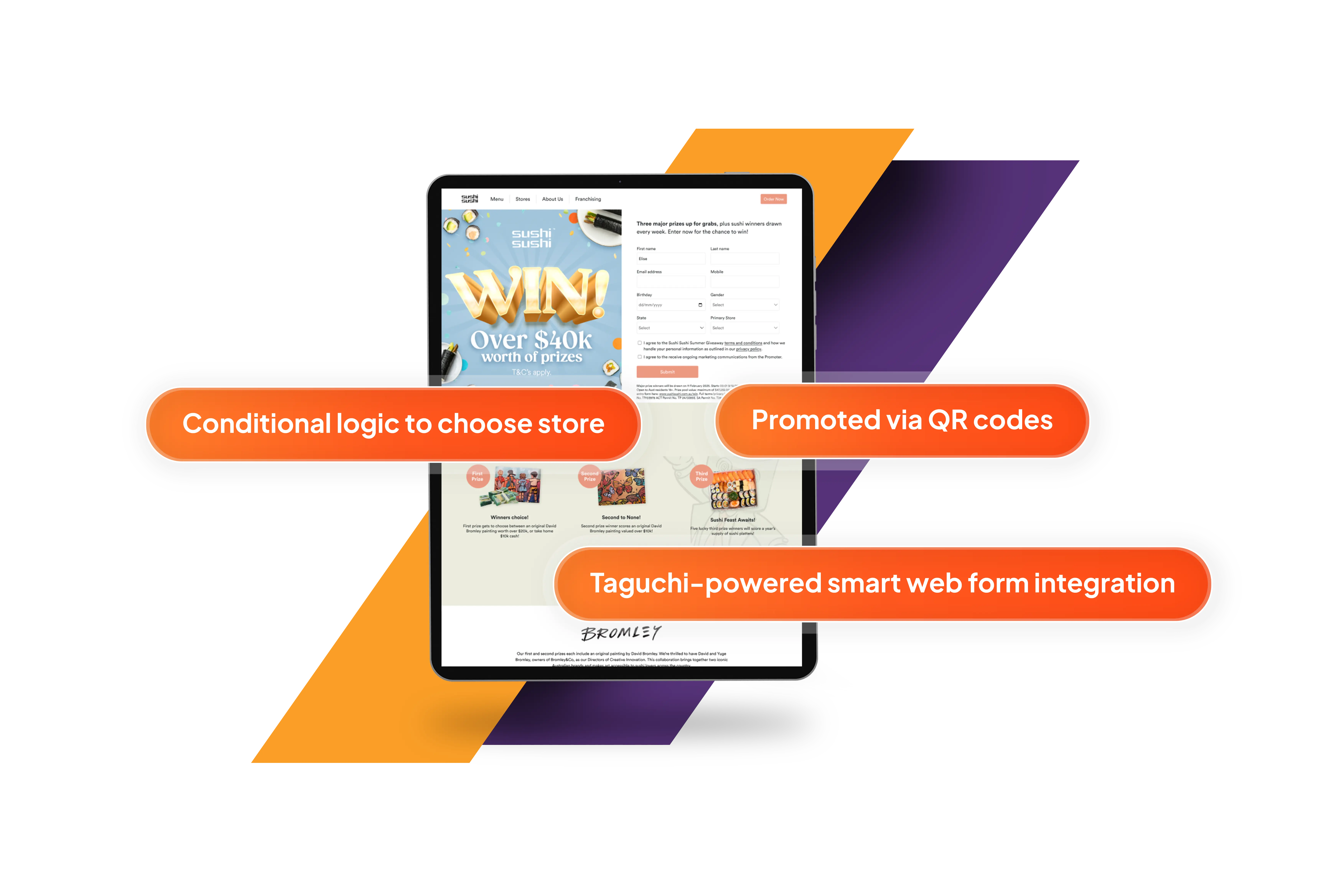 Customer participation began with a Taguchi-powered smart web form, embedded on the Sushi Sushi website and promoted across in-store collateral via QR codes. For broader reach, Meta ads ran in parallel, bringing in new leads through a branded giveaway message.